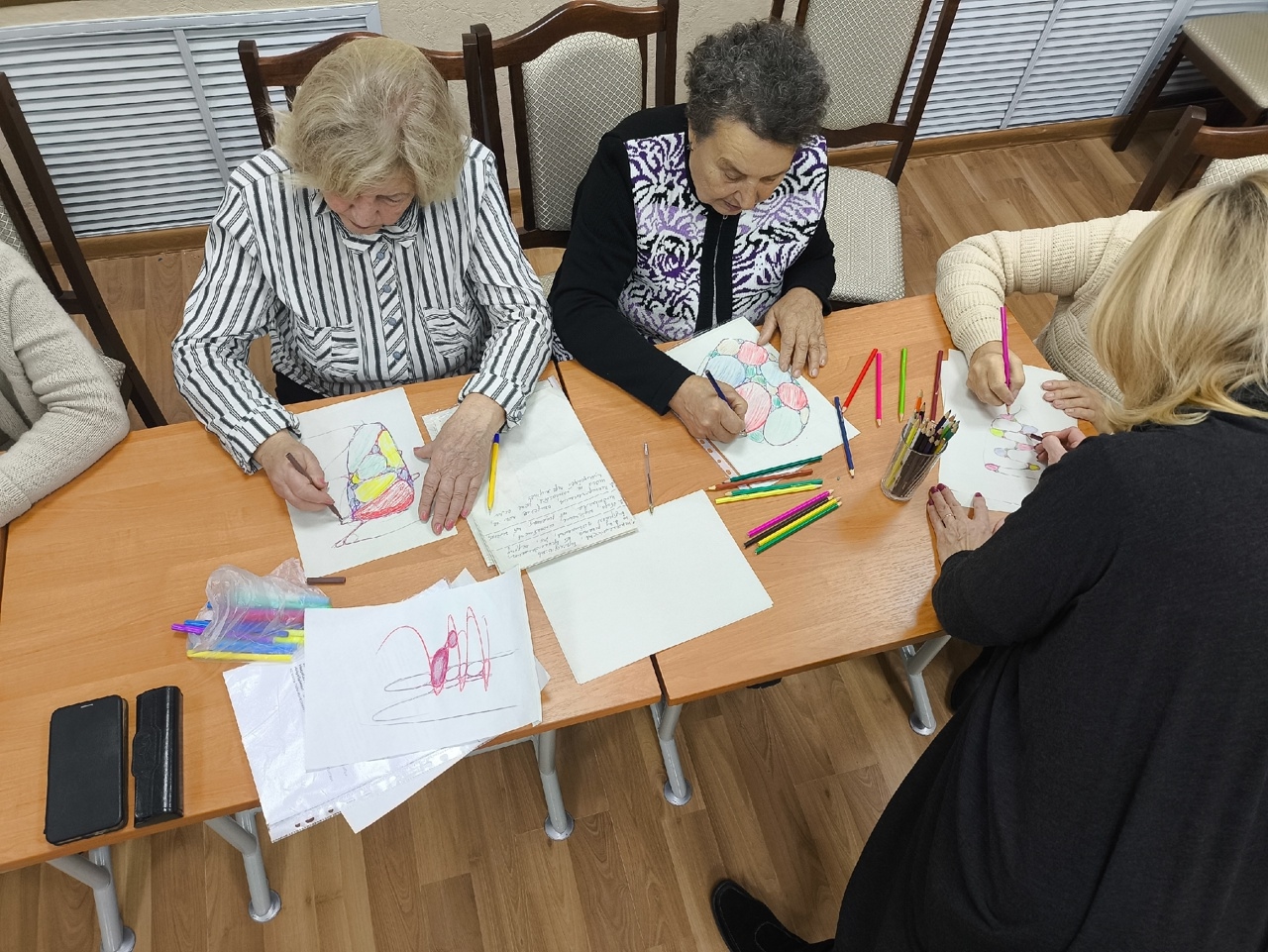 В рамках проекта "Школа ухода" в ОБУСО "ЦСО "Участие" ухаживающие родственники посещают занятия с психологом по нейрографике и пластилинотерапии