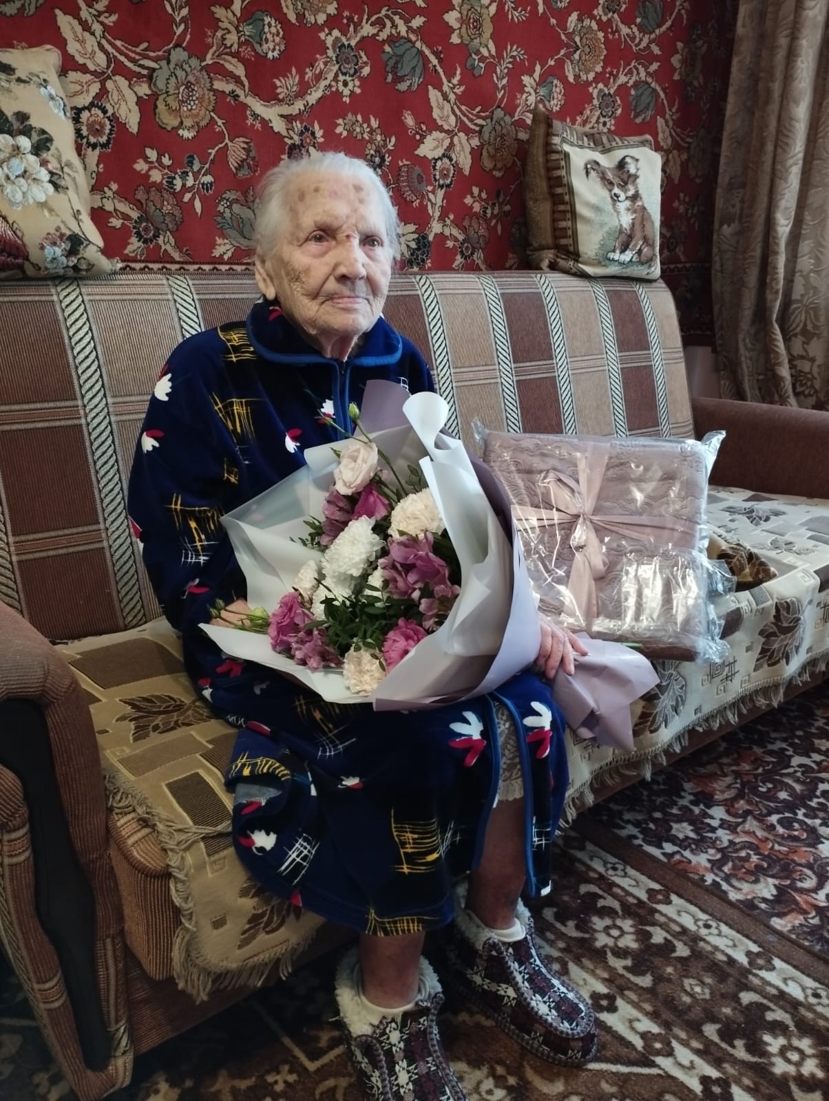 Администрация ОБУСО "ЦСО "Участие" города Курска" поздравила со 100-летним юбилеем получателя социальных услуг Марию Николаевну Черезову