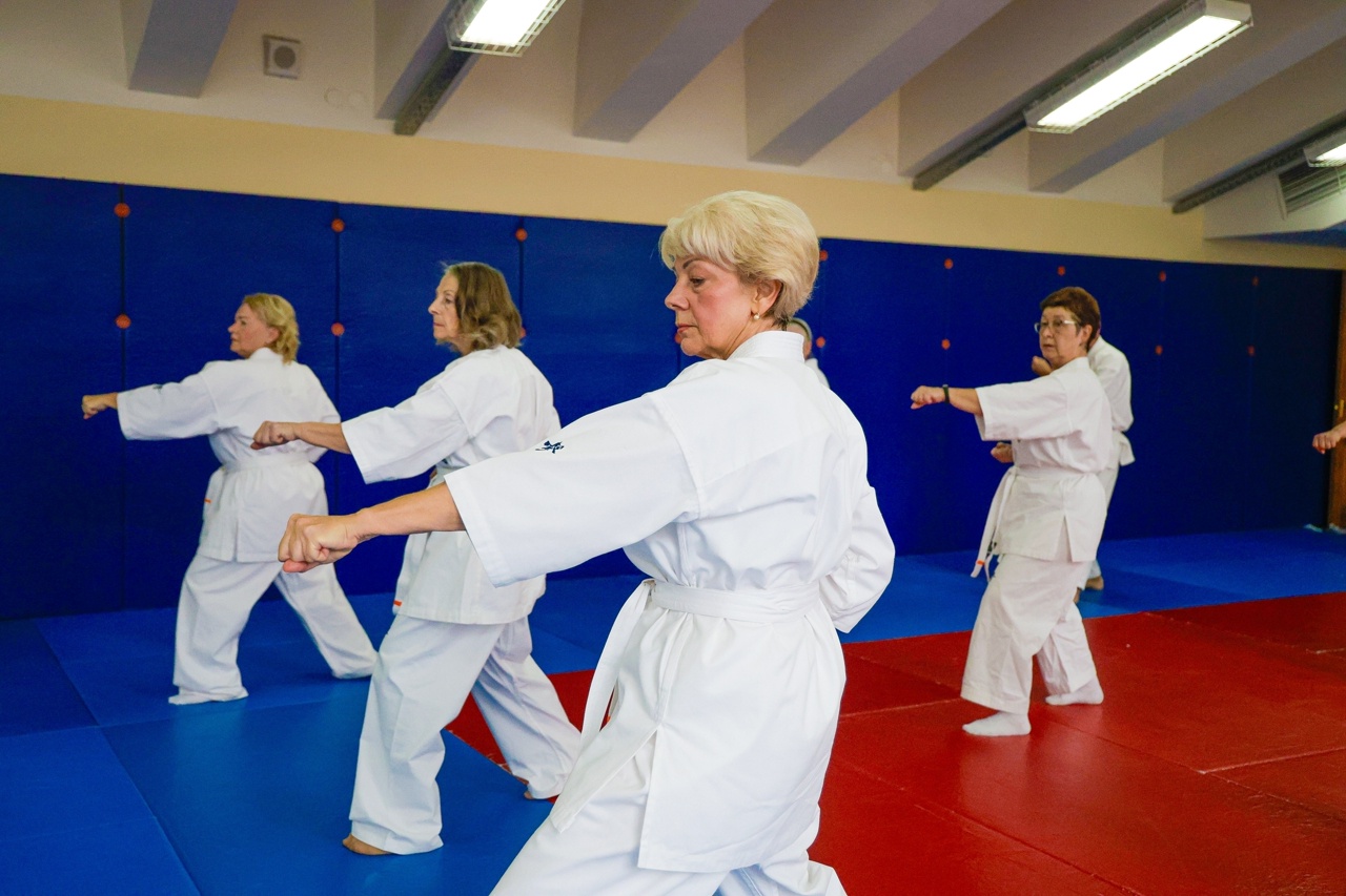 Участники проекта "Курское долголетие" отделения активного долголетия ОБУСО "ЦСО "Участие", занимающиеся киокусинкай, сдали квалификационный экзамен на ученические степени