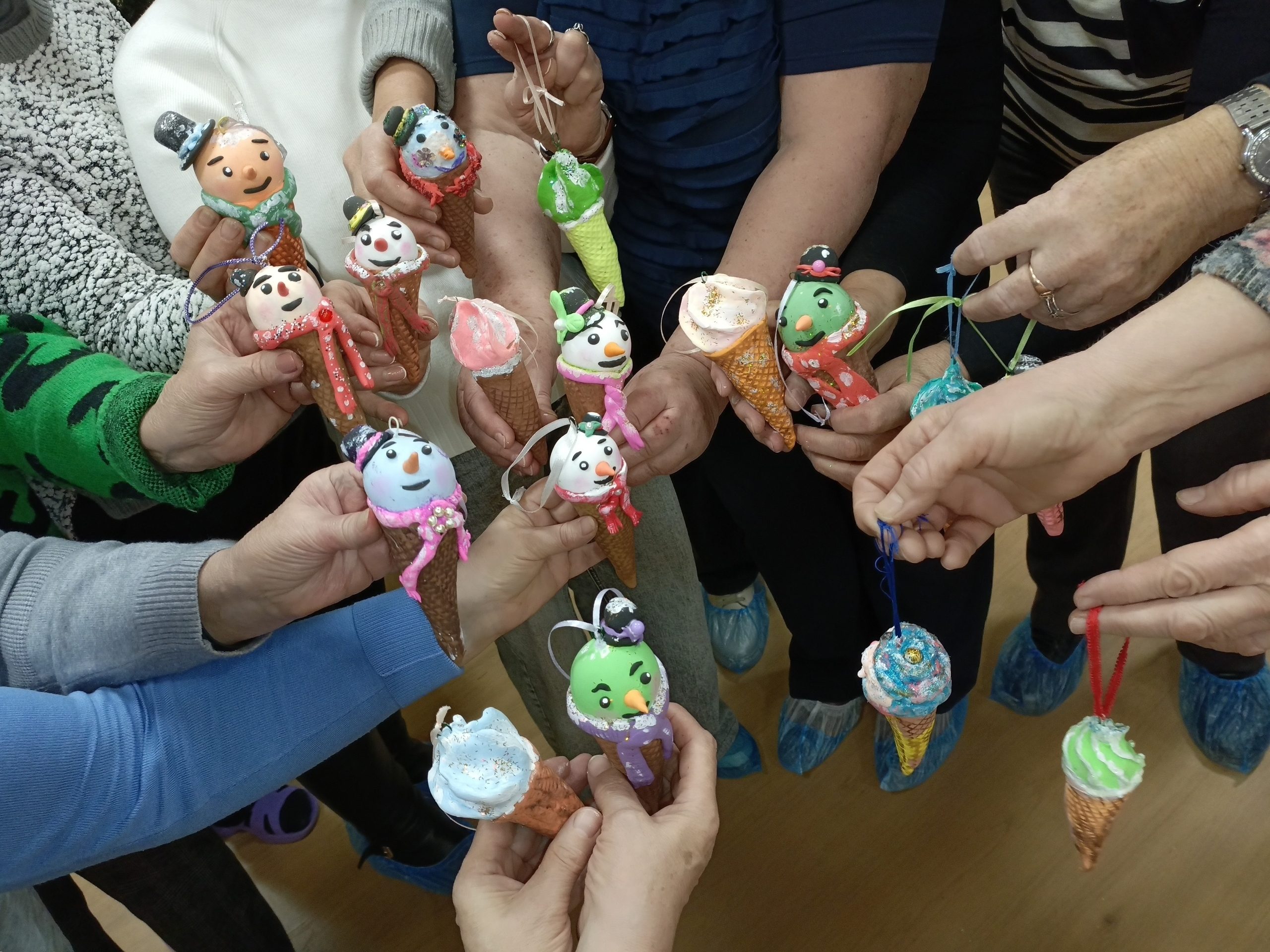 Это были не просто шары и сосульки! Фантазия участников превратила мягкий, податливый материал в настоящие миниатюрные шедевры: сладкие вафельные рожки с яркими шариками мороженого, забавные снеговики, решившие вместо традиционного места обитания устроиться в хрустящем рожке и даже волшебный старик Хоттабыч, готовый исполнить новогоднее желание!