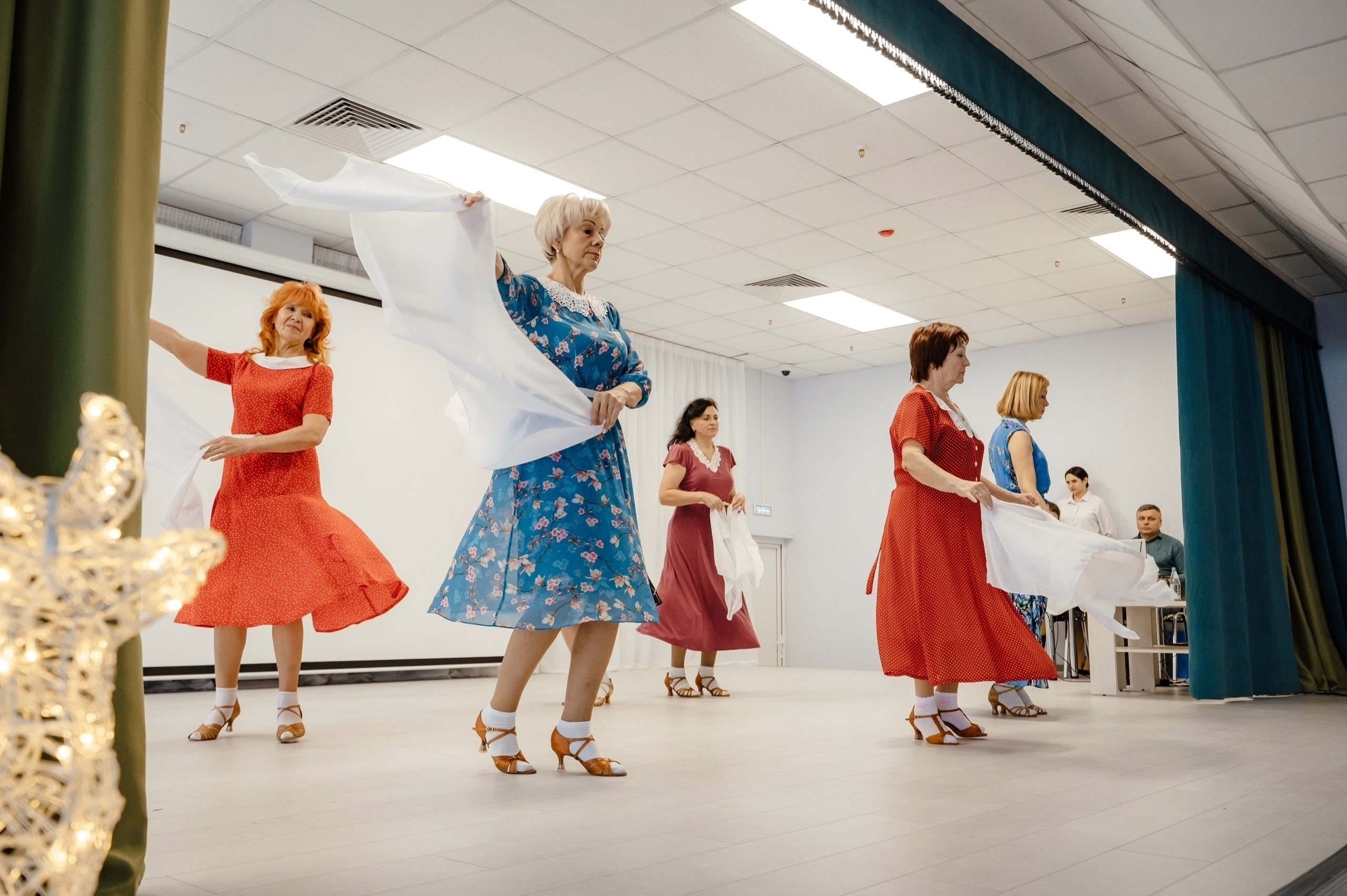 Участники танцевальной студии "Танцы без границ" отделения активного долголетия центра "Участие", занимающиеся в рамках проекта "Курское долголетие" , выступили на торжественном открытии нового корпуса Букреевского дома социального обслуживания в деревне Чурилово Курского района.