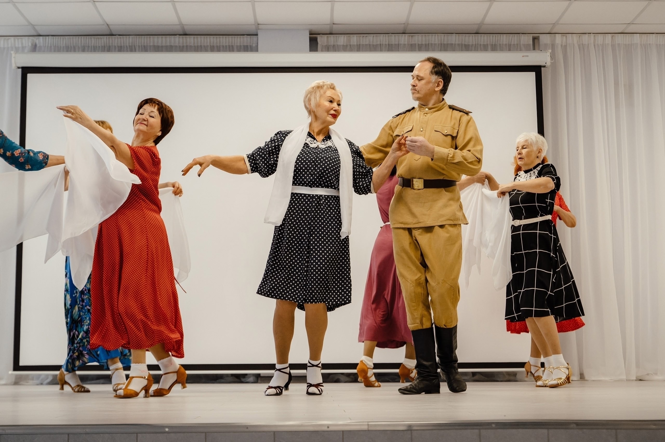 Танцевальный коллектив представил трогательную постановку «Вальс фронтовой сестры», посвященную памяти военных лет. Номер, наполненный искренностью и уважением к истории, был тепло принят зрителями.