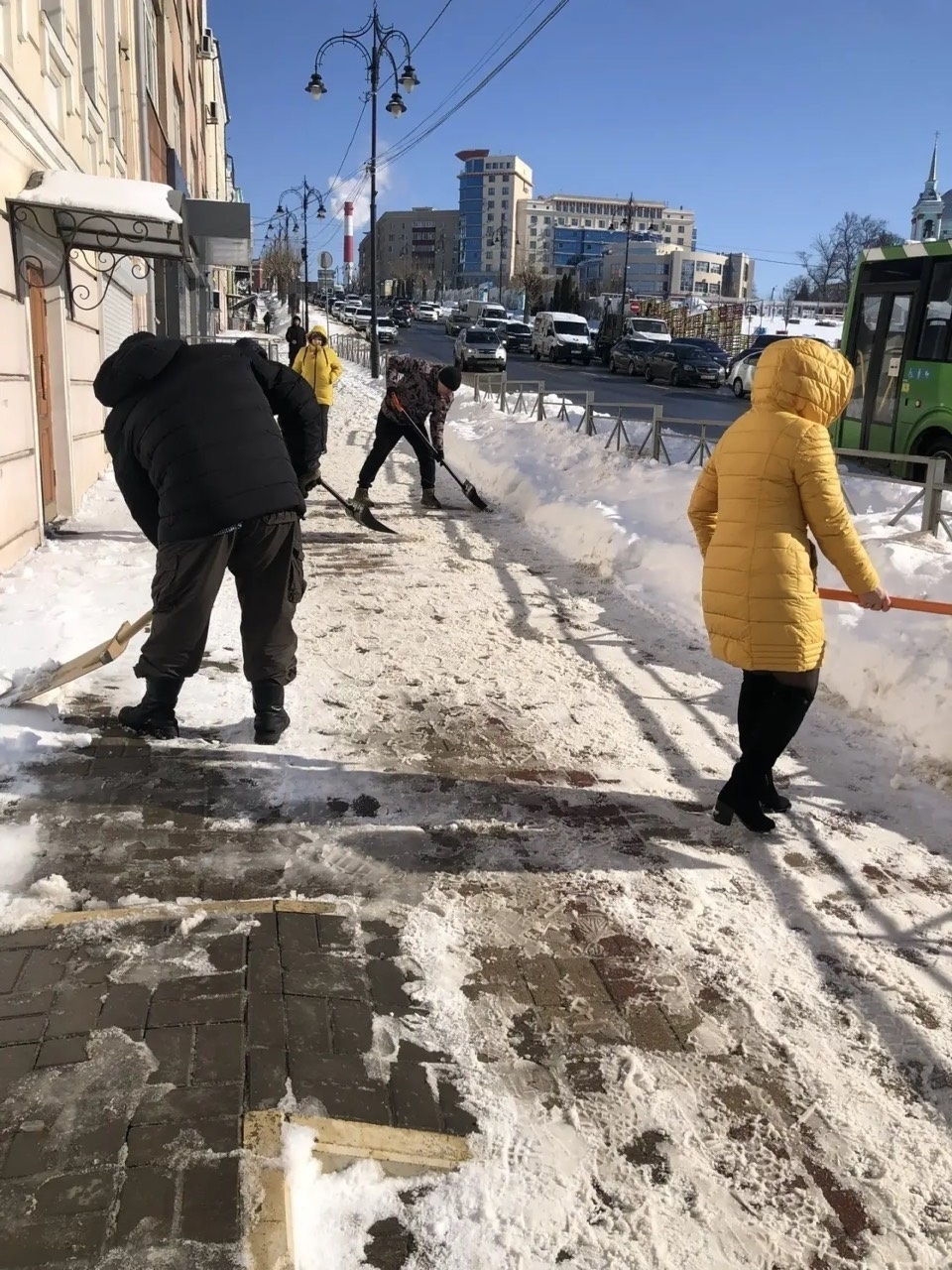 Сотрудники Центра социального обслуживания "Участие" оперативно провели работы по очистке прилегающей территории от снега и наледи