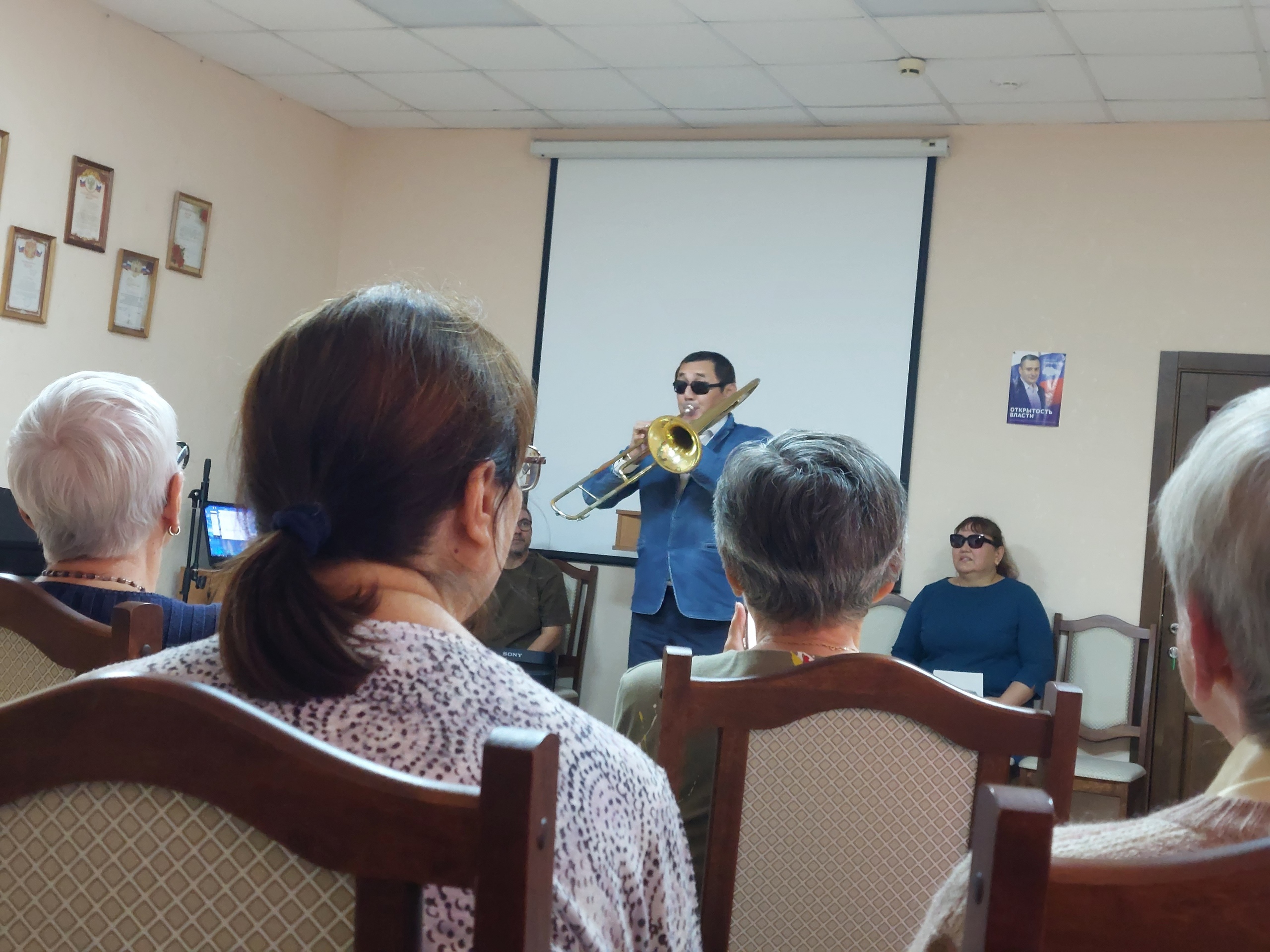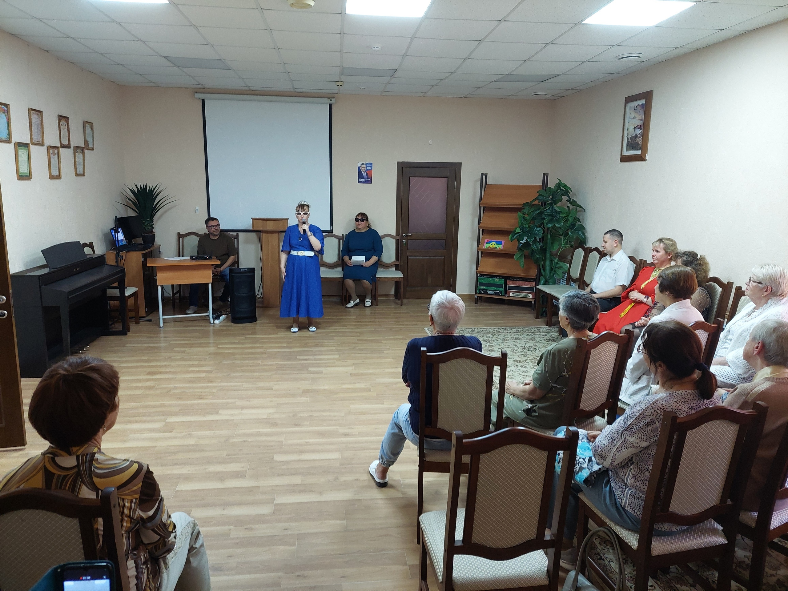 В отделении дневного пребывания ОБУСО «ЦСО «Участие» города Курска» для получателей социальных услуг выступил ансамбль Курской городской организации ВОС. Открыла программу художественный руководитель Центра реабилитации Курской региональной организации Всероссийского общества слепых Гульнара Джунусова.
