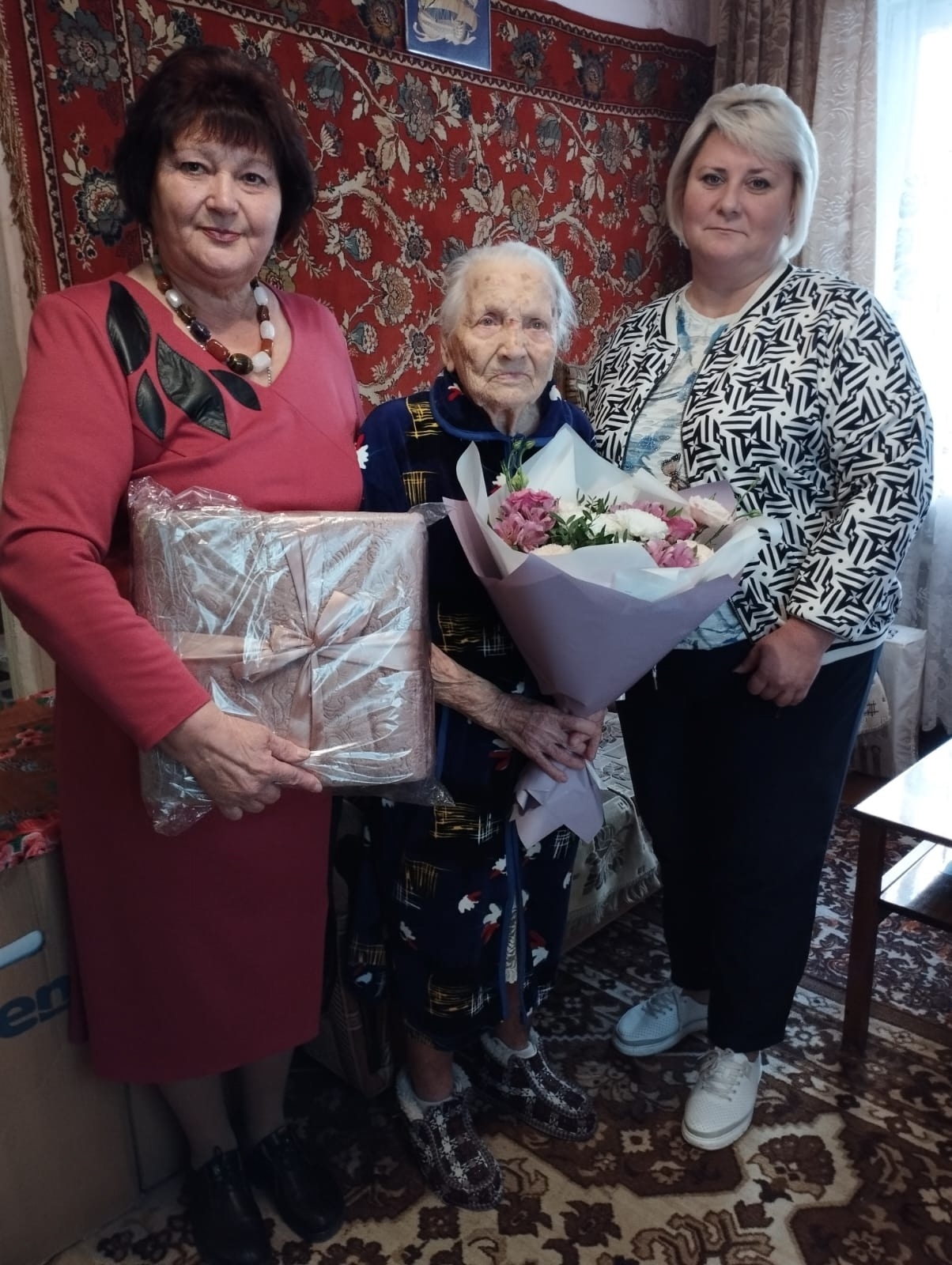 Администрация ОБУСО "ЦСО "Участие" города Курска" поздравила со 100-летним юбилеем получателя социальных услуг Марию Николаевну Черезову
