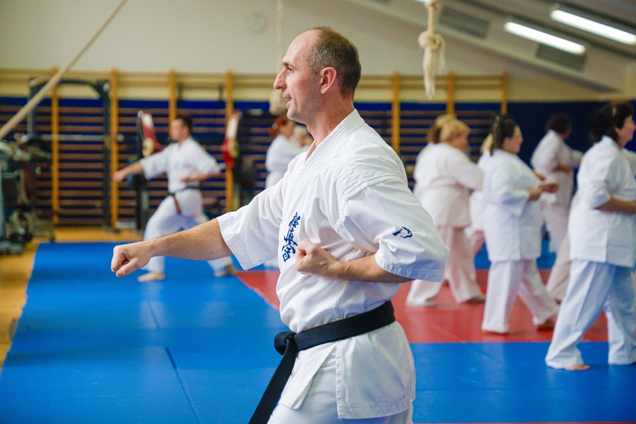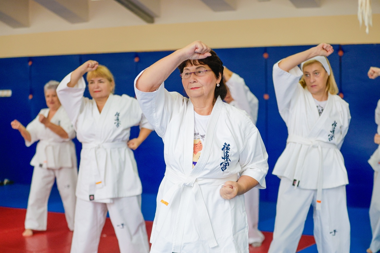 Участники проекта "Курское долголетие" отделения активного долголетия ОБУСО "ЦСО "Участие", занимающиеся киокусинкай, сдали квалификационный экзамен на ученические степени